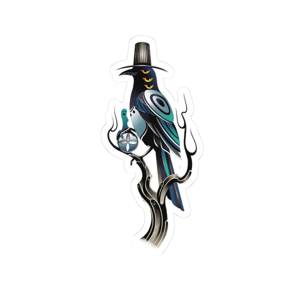 Vibrant and glossy Saja boys Magpie sticker from the movie Kpop Demon Hunters. Perfect for fans of the film looking to adorn laptops, journals, or windows with a scratch-resistant and long lasting design.