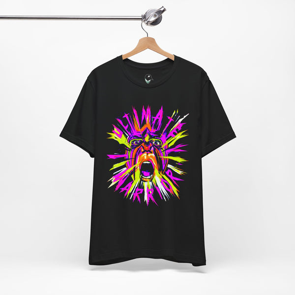 This Ultimate Warrior Tee is perfect for fans of the legendary wrestler, featuring a bold design of him yelling. The shirt gives off a powerful and energetic vibe, making it a great addition to any wrestling fan's wardrobe. Ideal for casual wear or as a statement piece for wrestling events and conventions.
